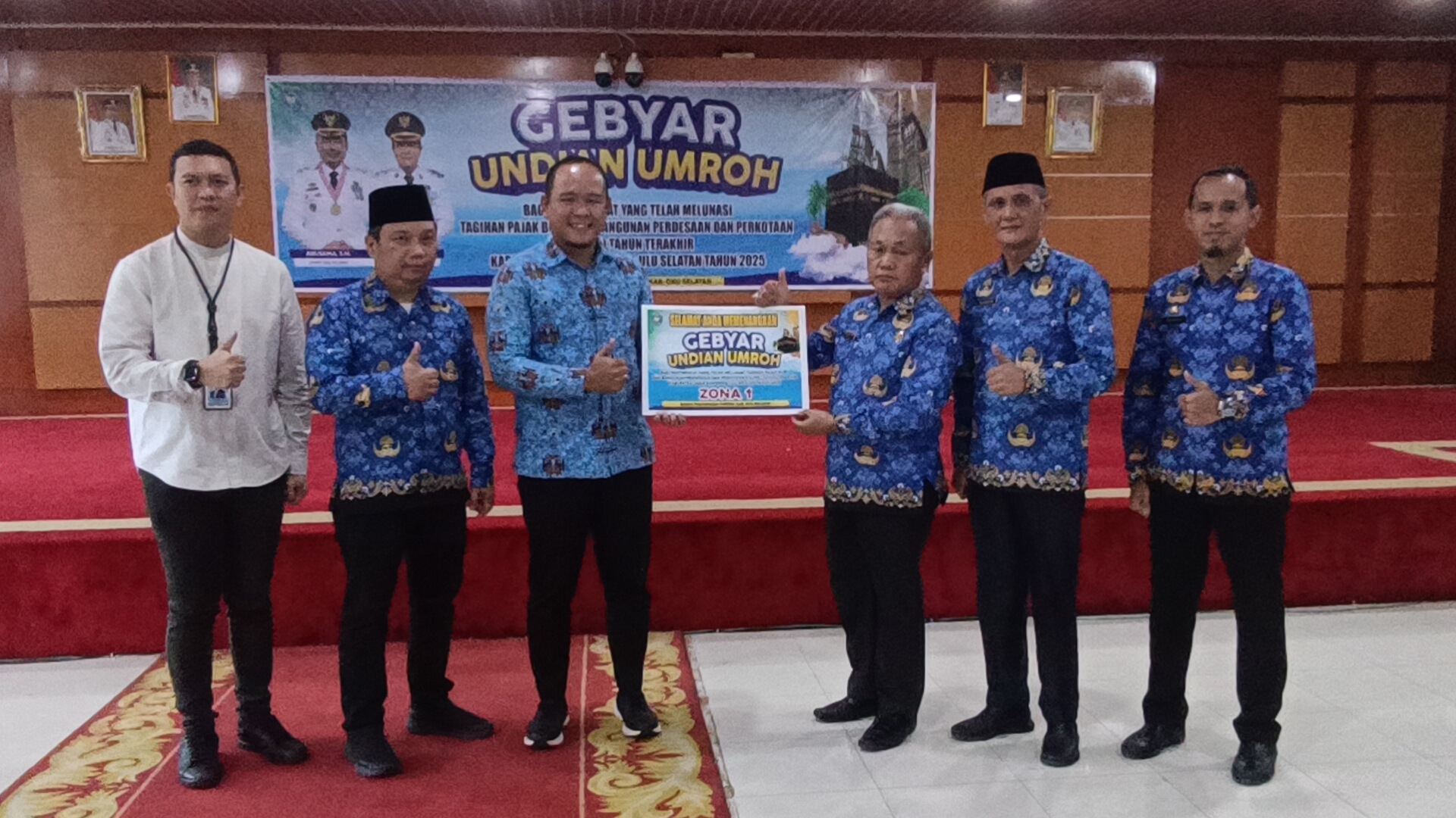 OKU Selatan,Beritanusantara.news — Gebyar Undian Pemenang Umroh Bagi Masyarakat Telah Melunasi Pajak Muaradua. Asisten Bidang Administrasi Umum OKU Selatan Setda OKU H, Ramin Hamidi, SE, MH, CGAA., menghadiri Gebyar Undian Pemenang Umroh Bagi Masyarakat Yang Telah Melunasi Tagihan PBB-P2 5 Tahun Terakhir di Ruang Serasan Seandanan, Jumat (17/10/2025)