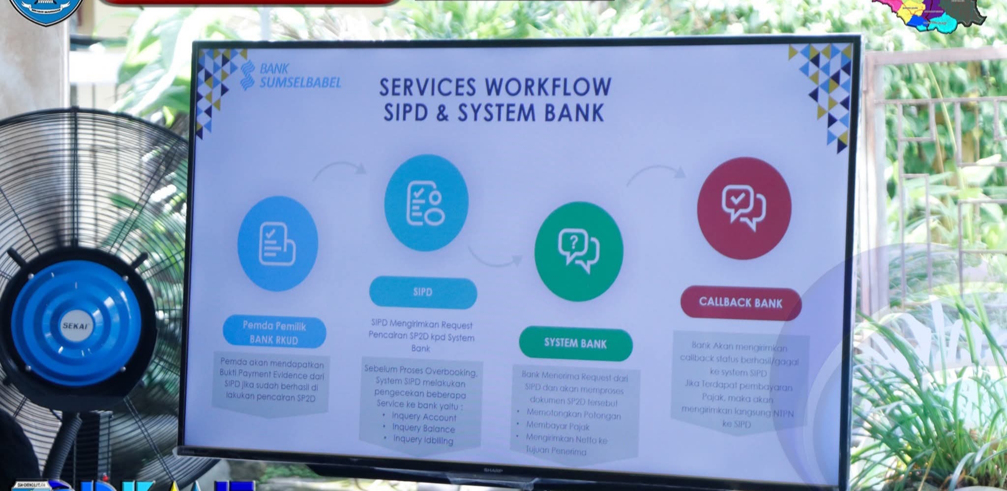 Acara ini juga diisi dengan sosialisasi, serta uji coba operasional Aplikasi SIPD-RI yang terintegrasi dengan Bank Sumsel Babel.