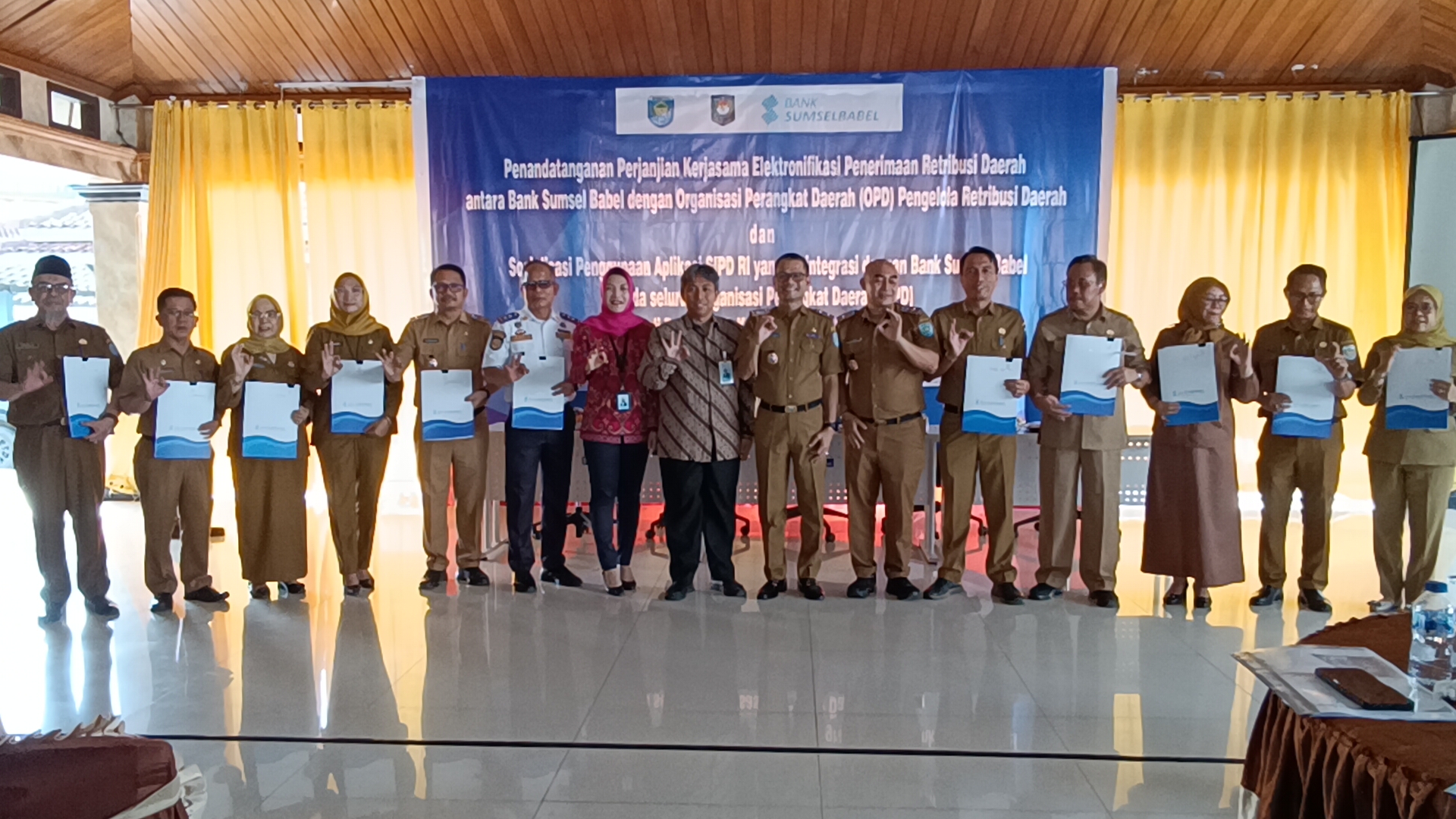 Bertempat di Aula Pendopo Hotel Samudra, dilaksanakan Penandatanganan Perjanjian Kerjasama Elektronifikasi Penerimaan Retribusi Daerah antara Pemerintah Kabupaten OKU Selatan dan Bank Sumsel Babel.