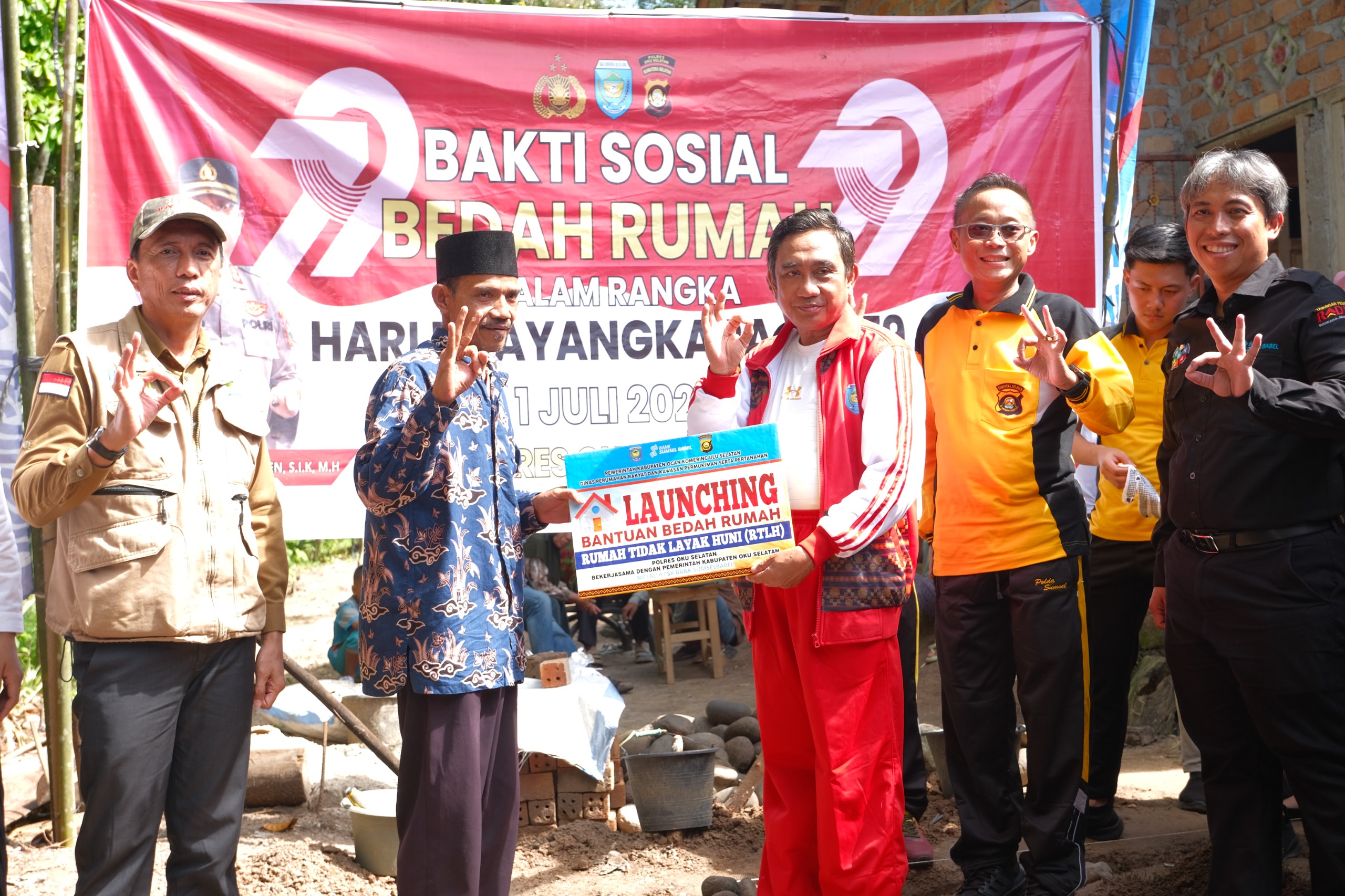 Peletakan batu pertama pembangunan rumah baru ini, dilakukan langsung oleh Kapolres OKU Selatan dan didampingi Asisten Bidang Administrasi Umum OKU Selatan, Kepala Dinas Perkimtan OKU Selatan, Kepala Bank Sumsel Babel Cabang Muaradua.
