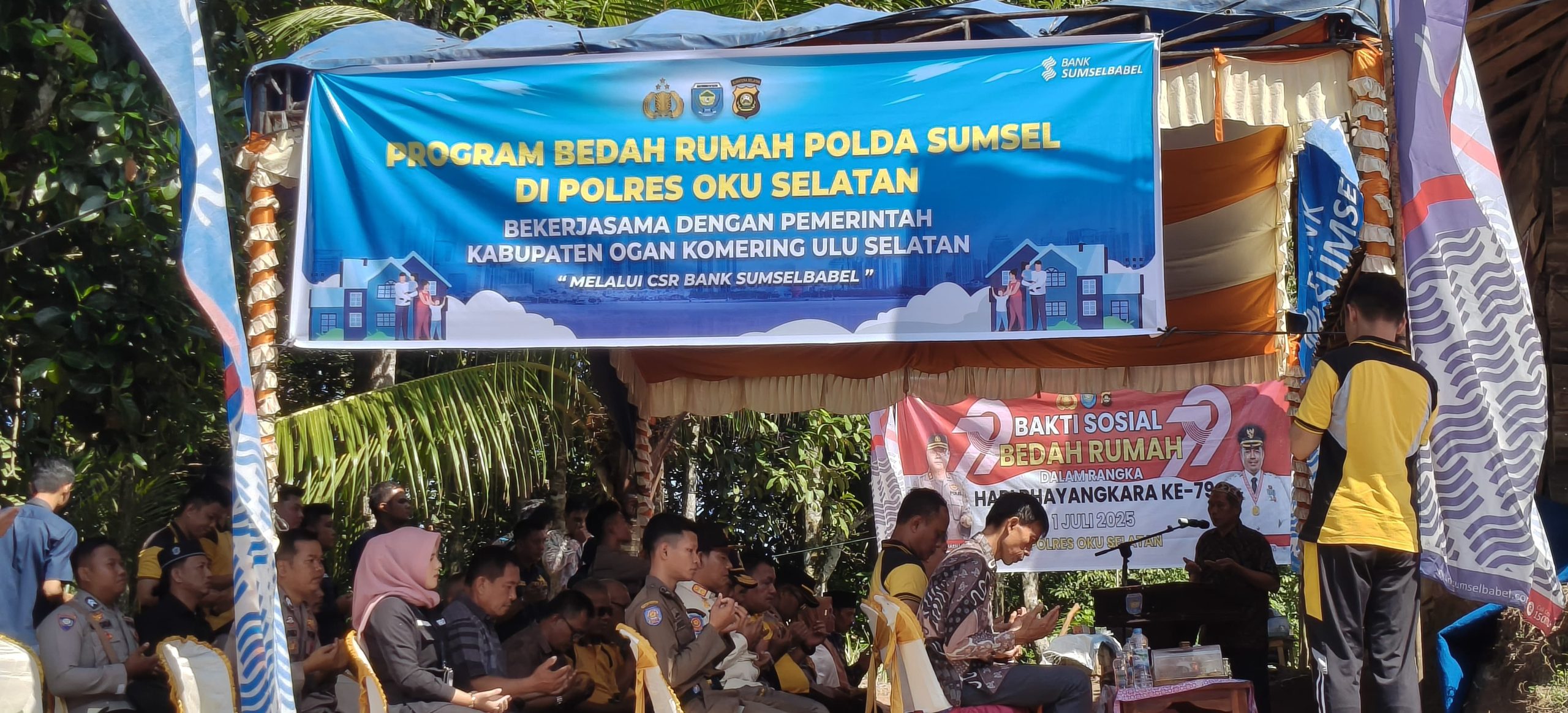 Program Corporate Social Responsibility (CSR) Bank Sumsel Babel berkolaborasi dengan Polres OKU Selatan berhasil membahagiakan Bapak Trimo, warga Desa Gunung Terang, Kecamatan Buay Sandang Aji, Kabupaten OKU Selatan.