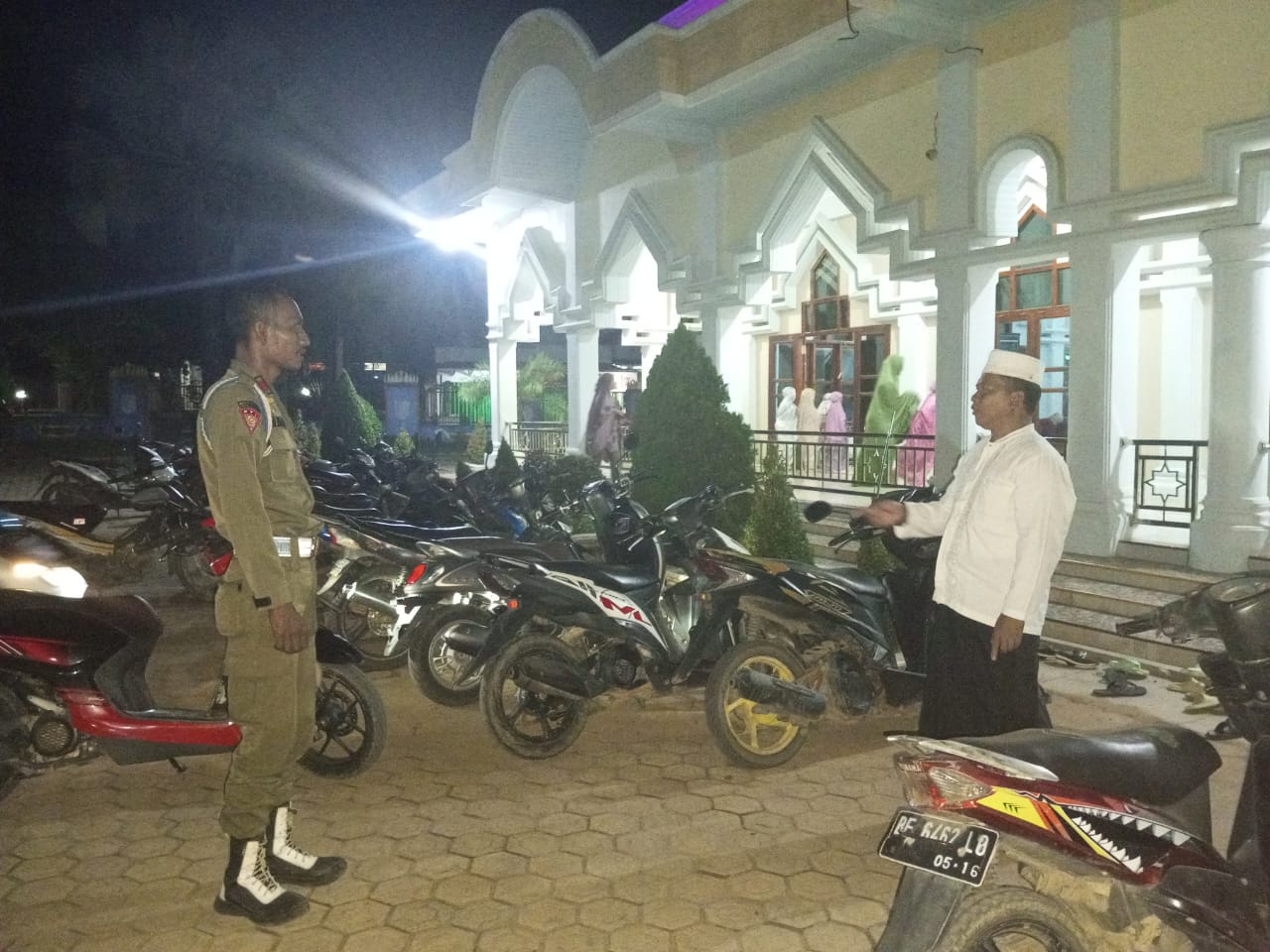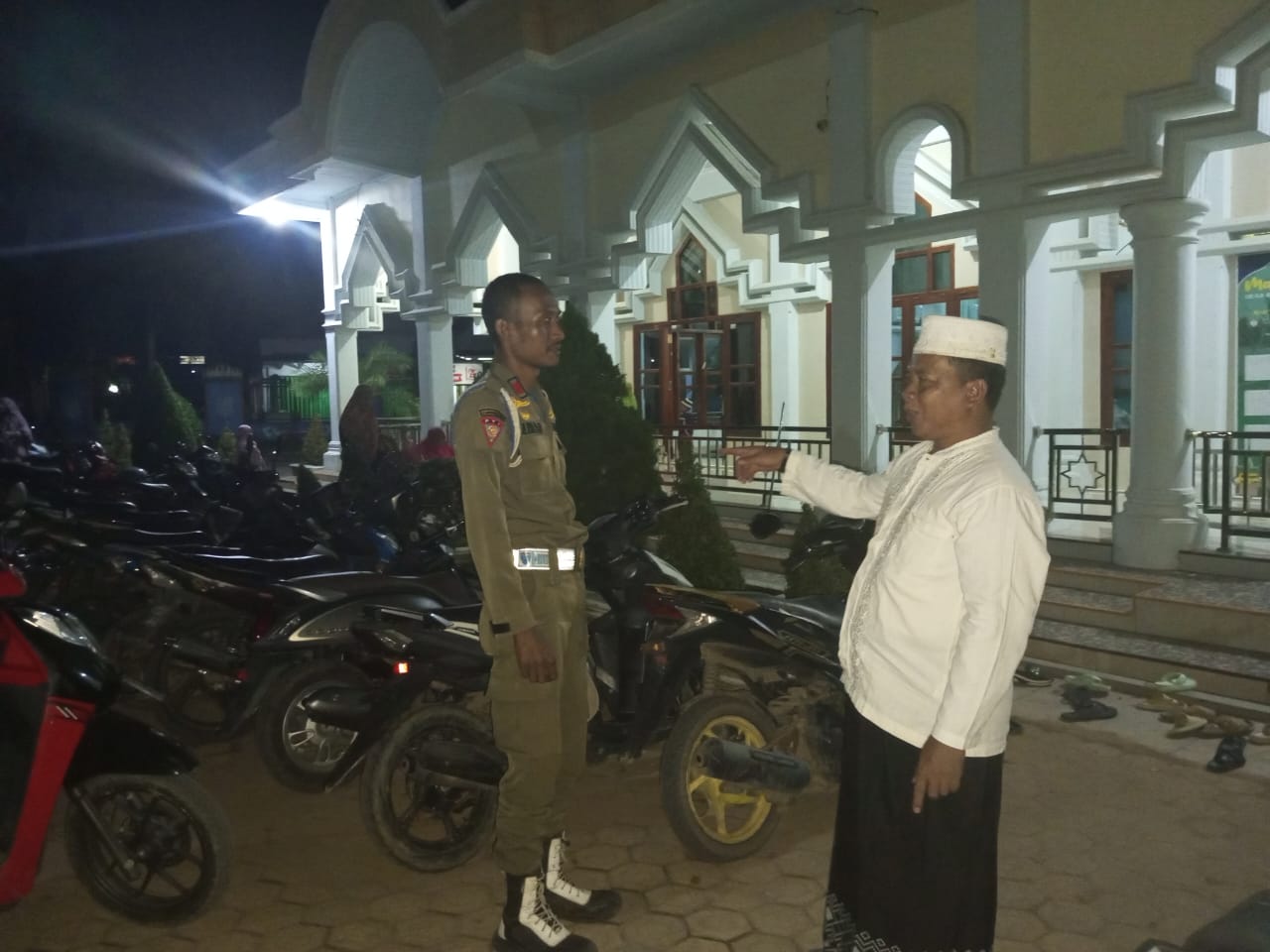Mesuji,Beritanusantara.news – Untuk menjaga dan memastikan kenyamanan selama pelaksanaan Ibadah sholat Isya dan Tarawih di bulan Suci Ramadhan 1445 H. Pengurus Masjid Agung Jami’ Arriyadh, Desa Brabasan, Kecamatan Tanjung Raya, Kabupaten Mesuji, melibatkan pihak keamanan 1 anggota Sat Pol -PP Mesuji guna lakukan penjagaan kendaraan dan lingkup halaman sekitar.