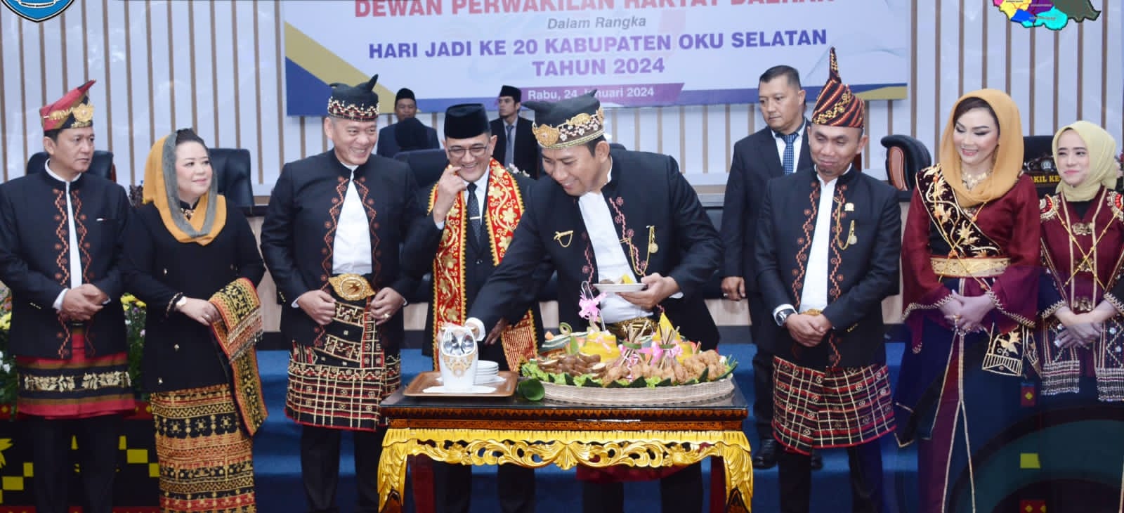 Usai rapat Paripurna, acara dilanjutkan dengan pemotongan nasi tumpeng. HUT OKU Selatan Tahun 2024 mengusung Tema “Terus Melaju untuk OKU Selatan Bersinar”. (Yuni)