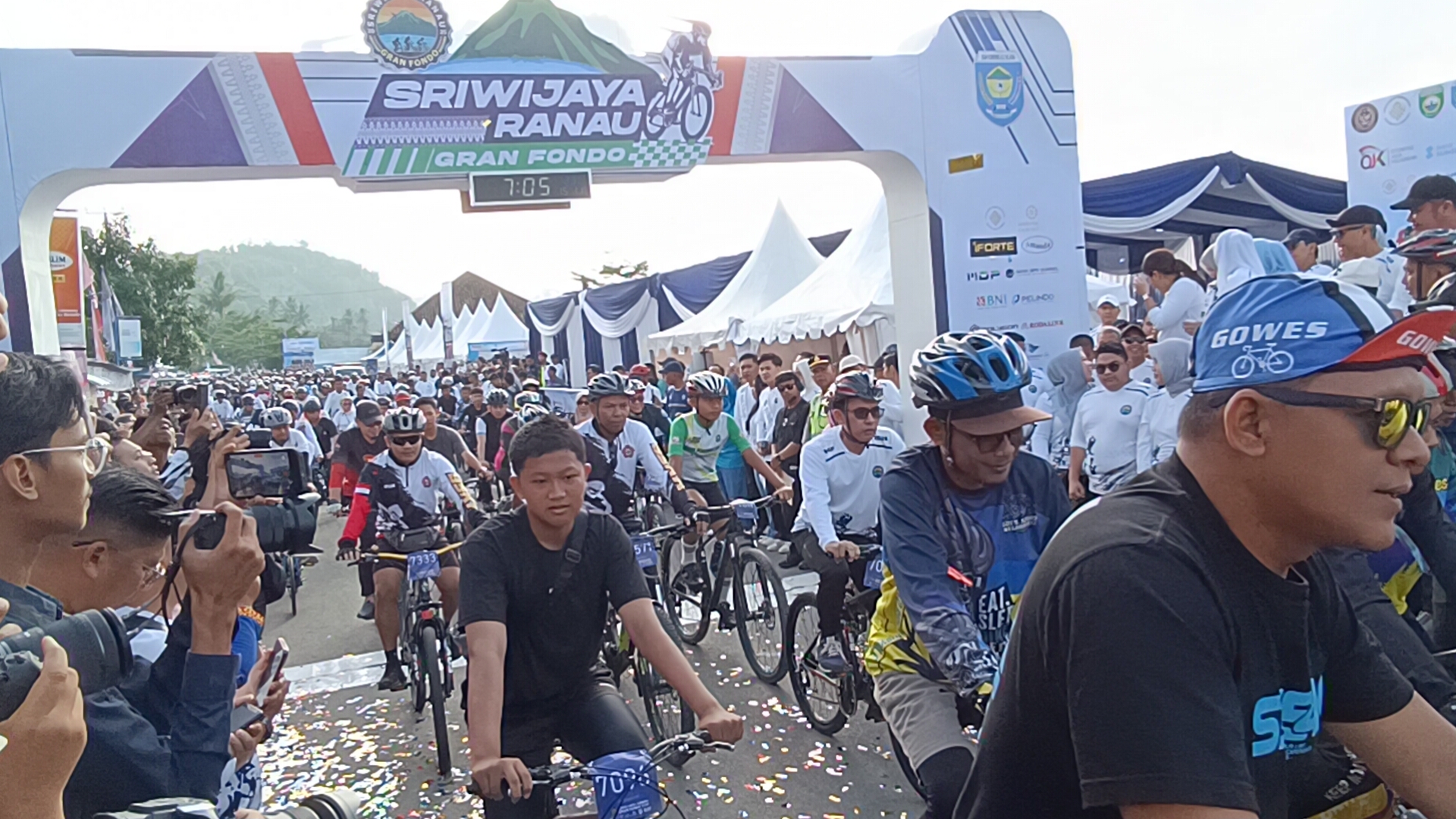 Para Goweser atau rider dari berbagai wilayah di Indonesia mengikuti event olahraga yang dipadukan dengan pariwisata (Sport Tourism) Sriwijaya Ranau Gran Fondo (SRGF) Tahun 2025 yang dilaksanakan di kawasan wisata Danau Ranau.