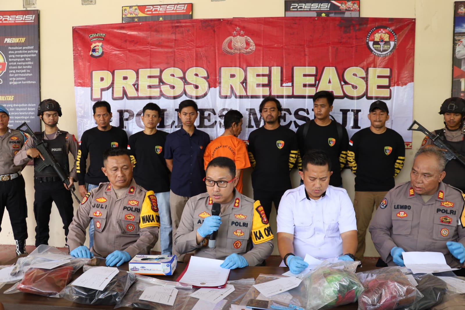 Hadir dalam press release Kapolres Mesuji AKBP Ade Hermanto S.H, S.IK, CPHR dengan di dampingi Waka Polres Mesuji Kompol Juli Sundara S.Pd, Kasi Humas Polres Mesuji AKP Lembo Marlindo, Kasat Reskrim AKP Sigit Barazili S.T, M.H, Kapolsek Tanjung Raya IPTU Bambang P dan KBO Sat Reskrim IPTU Daniel S.H. (Tamrin)