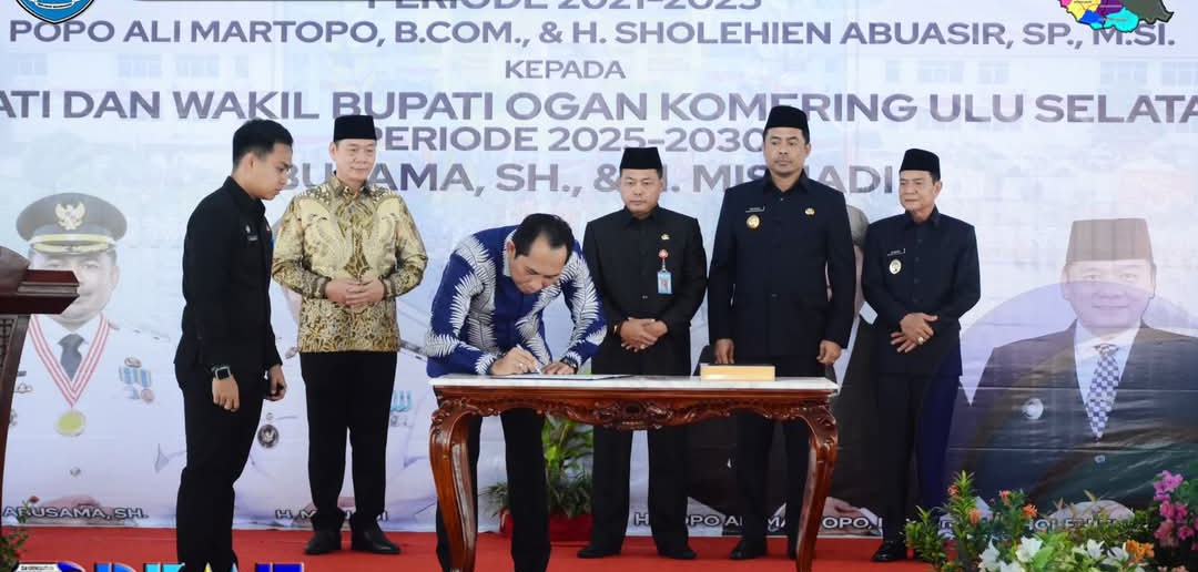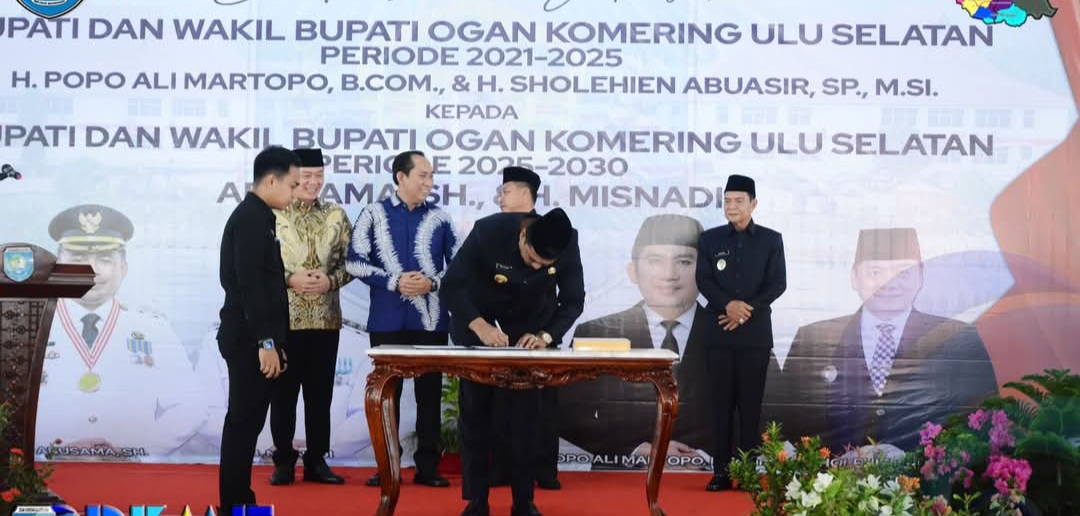 Pemerintah OKU Selatan Gelar Sertijab Bupati dan Wakil Bupati Periode 2021- 2025 H. Popo Ali Martopo, dan H. Sholehien Abuasir, Kepada Bupati dan Wakil Bupati OKU Selatan Periode 2025- 2030 Abusama dan H. Misnadi