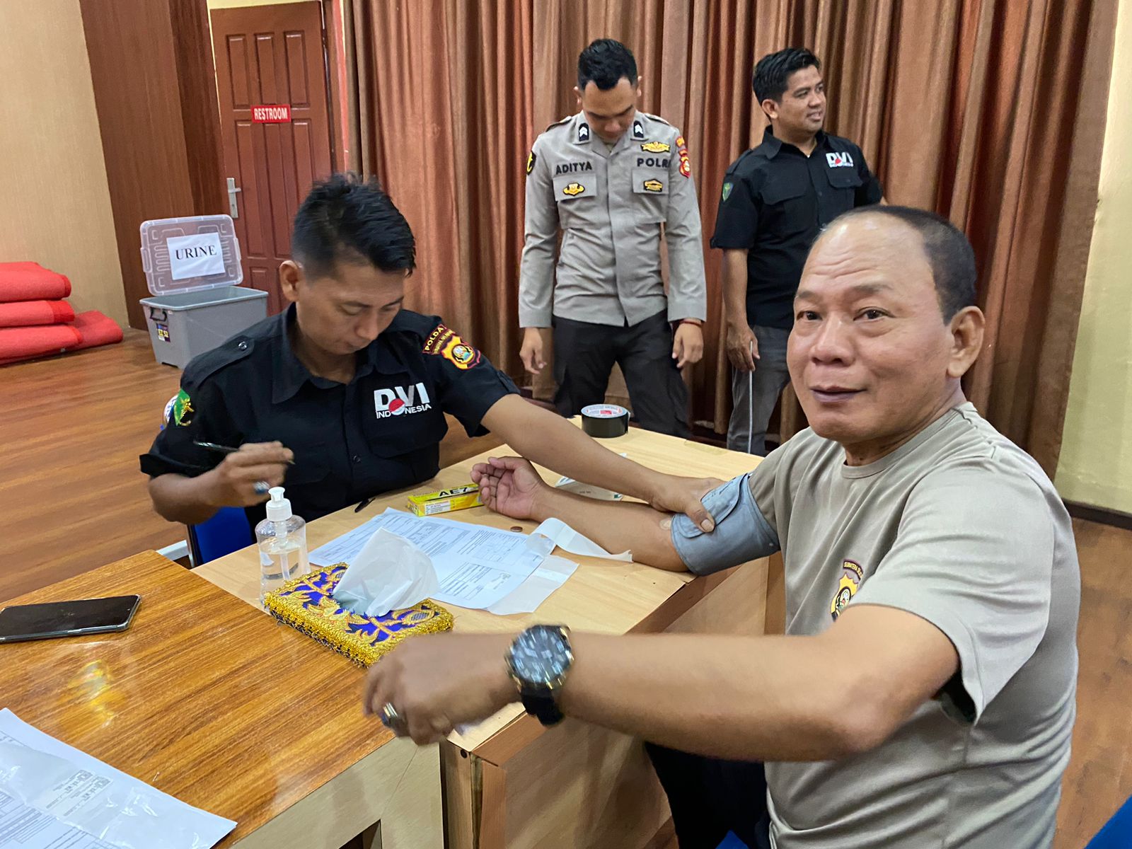 Pemeriksaan kesehatan ini dimulai dari pemeriksaan tensi darah, urine, gigi dan Treadmill sera UKG.