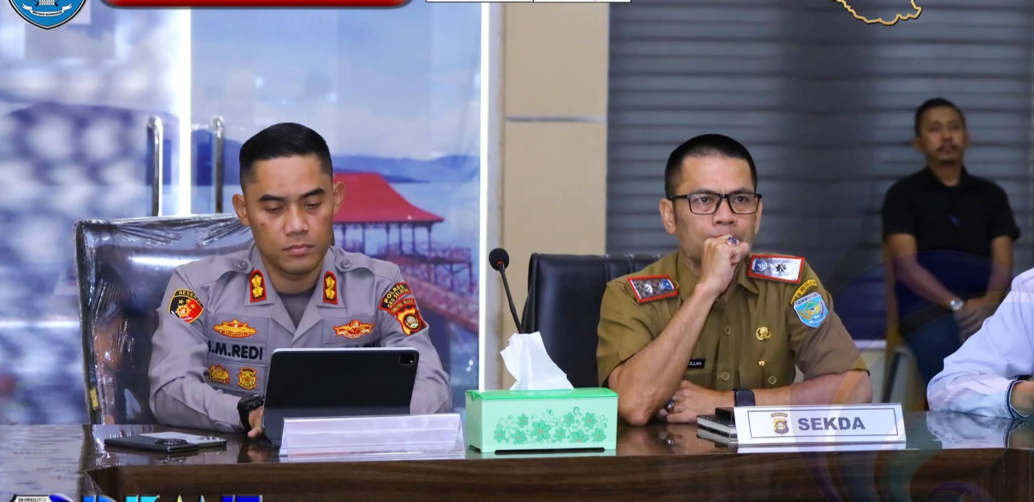 Sekretaris Daerah mengikuti rapat tersebut secara virtual bersama Kapolres OKU Selatan AKBP I Made Redi Hartana, S.H., S.I.K., M.I.K., dari Aula Sertu Pol Anumerta Hadinata Polres OKU Selatan.
