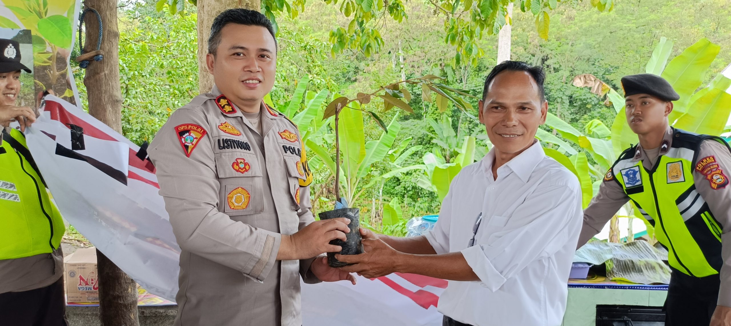 “Ini demi kelancaran ekosistem alam agar tetap terjaga, dan juga pohon ini semoga nantinya mampu membendung aliran kikisan air,” tandas Kapolres.